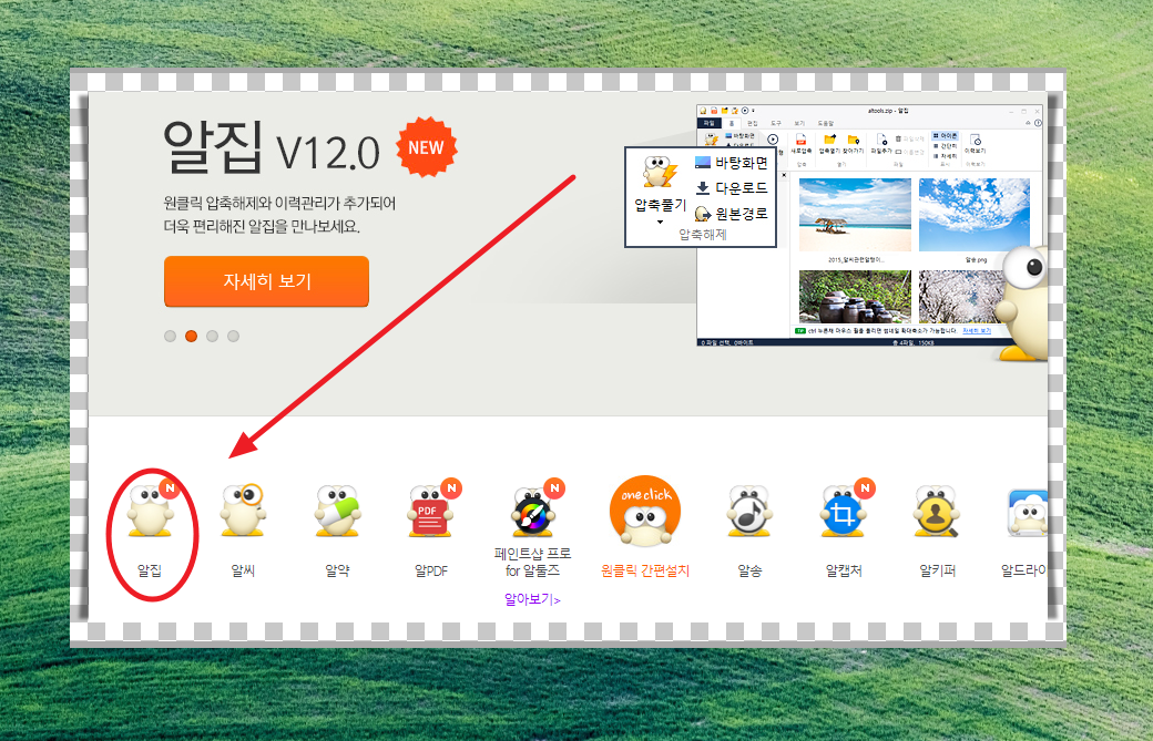 여기에서 [알집]을 클릭하면 바로 egg을 여는 프로그램을 설치할 수 있습니다.