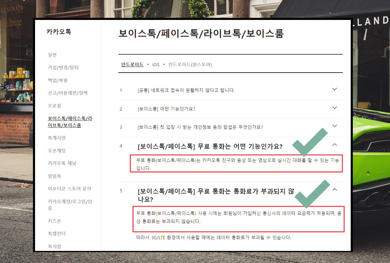 아이폰의 Facetime과 같이 카카오톡에서도 이와 유사한 서비스를 제공하고 있습니다. 무료로 음성이나 영상 통화를 할 수 있도록 하는 서비스인데요. 이 경우에는 본인과 상대방 모두 아이폰을 사용하지 않아도 이용이 가능합니다. 두 사람 모두 카카오톡을 설치한 스마트폰을 보유하고 있으면 됩니다. 안내 문구에 나와 있듯이 이 경우에는 음성 통화료가 부과되지 않습니다. 데이터 사용에 대한 요금이 발생할 수 있기 때문에 이를 피하기 위하여 wifi 공유기를 사용하면 됩니다.