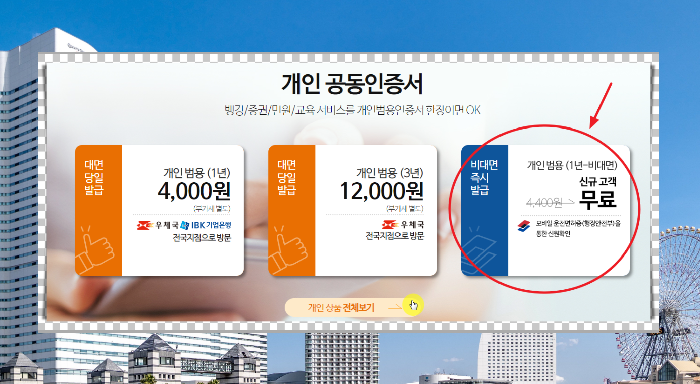 이벤트를 통해 개인용 1년용 범용 공동 인증서를 무료로 발급 받는 방법이 존재합니다. 하나의 인증서로 모든 거래에 사용할 수 있는 것이 "범용"이라 칭한답니다. 일반적으로 1년에 약 4,400원의 수수료가 발생하지만,
