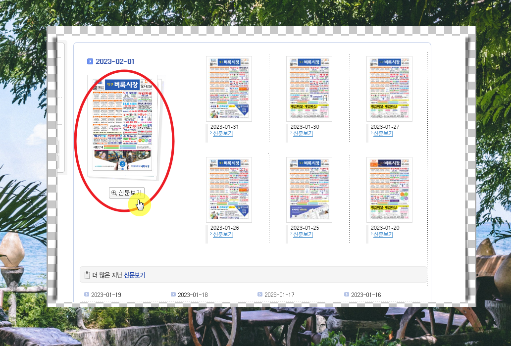 가장 최근에 나온 벼룩신문을 찾는다면 좌측 상단을 기준으로 첫 번째 것을 선택하면 돼요.