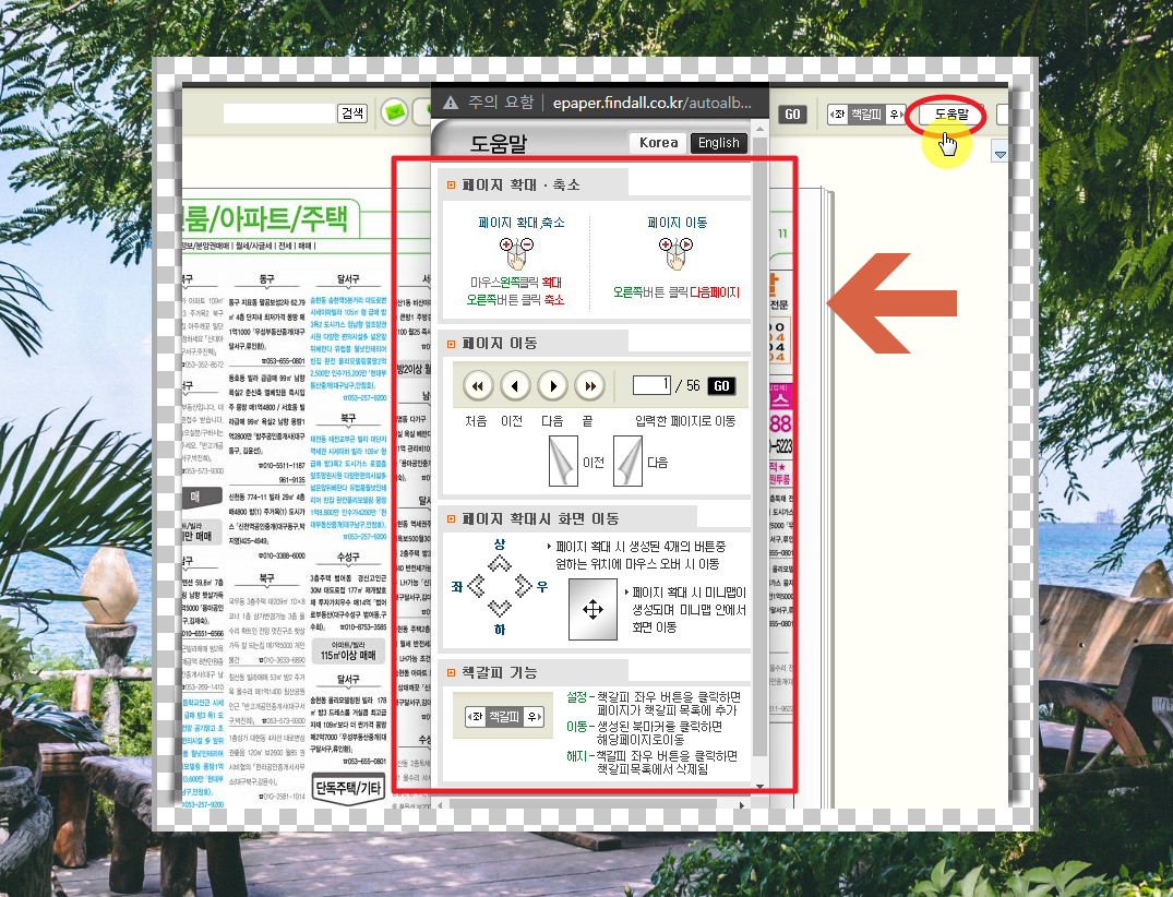 종이 버전의 벼룩신문과 동일한 모습으로 볼 수 있습니다. 첨부한 이미지 화면처럼 종이신문을 스캔한 것을 컴퓨터에서 확인할 수 있으며, 오히려 PC를 이용하면 최신호를 더 빨리 찾을 수 있습니다. 이용법도 간단하고, 무료 이용이 가능한 서비스입니다.