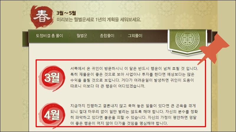 월마다 어떤 일들이 생기는지 그리고 무엇을 조심하고, 명심해야 하는지 무료 토정비결을 통해 알아볼 수 있어요.