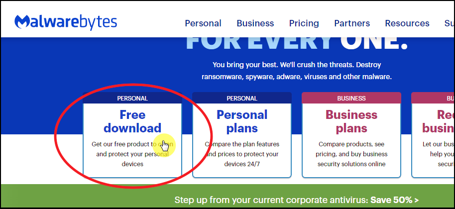 7. 멀웨어바이트 사이트에 접속했어요. 여기서 프로그램을 다운 받아 설치 해야 되는데요. 무료버전을 이용하면 돼요. 무료버전을 사용해도 컴퓨터에 문제를 해결할 수 있어요.