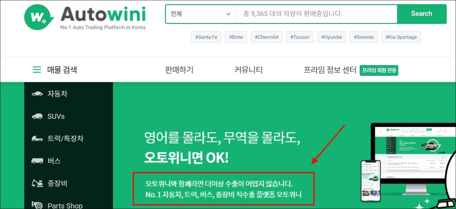 매물을 검색하거나 가지고 있는 중기를 해외로 수출할 수 있는데요. 영어나 무역을 알 필요가 없이 오토위니를 통해 쉽게 진행이 가능합니다.