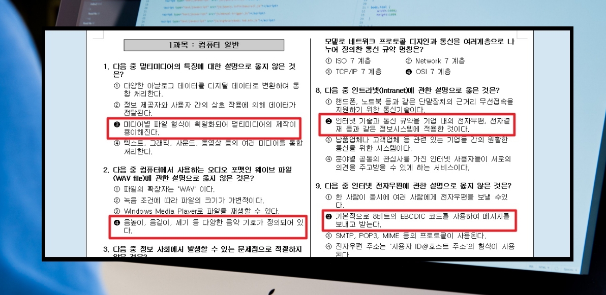 필기시험 대비 기출문제를 푸는 것은 다양한 면에서 도움이 됩니다. 일단 자신이 제대로 이해하지 못하고 있거나 모르는 부분을 알아내고, 이에 대해 공부할 수 있습니다. 두 번째는 다양한 유형을 익힐 수 있다는 것입니다.