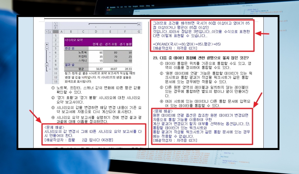 1. 보통 기출문제 자료를 이용해보면 해설까지 나와 있는 경우는 드뭅니다. 대부분 정답표 정도만 추가되어 있죠. 제가 이용하는 사이트의 경우에는 컴활2급 필기 시험을 준비할 때 도움이 되는 해설도 포함되어 있습니다. 기출문제를 풀다가 틀린 문항에 대해 공부할 때 해설이 있으면 정말 편해요.오답노트를 만들 때에도 유용하죠.