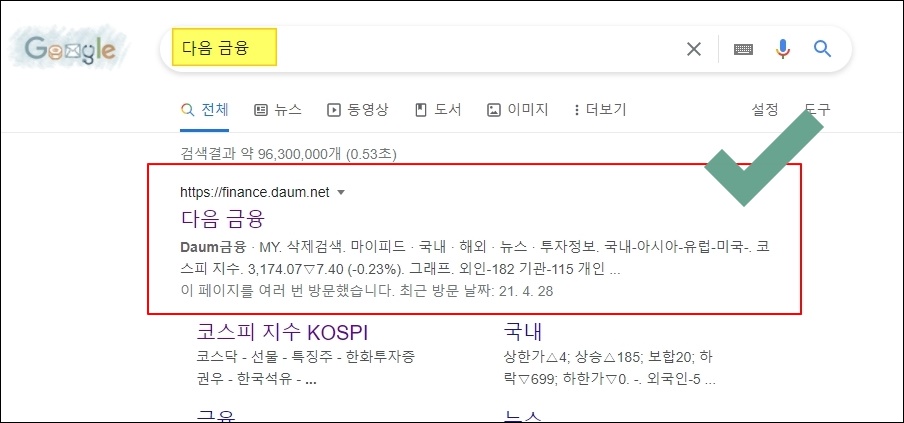 전광판처럼 한 번에 많은 주식 종목을 확인할 수 있는 서비스를 제공하는 사이트가 있습니다. 바로 다음 금융 사이트인데요. 이곳의 경우 뉴스 얻기에도 좋고, 주식 차트를 보거나 관련 정보를 얻기에도 편합니다. 유저 인터페이스가 정말 잘되어 있어서 저는 HTS와 함께 사용합니다.