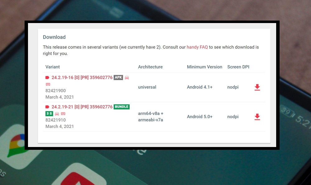 4. 다운 받고 싶은 버전을 선택해 주세요. 여기서 보면 간단하게 최소 사양을 확인할 수 있는데요. 기기의 안드로이드 운영체제 버전에 대한 것이에요. 제가 선택한 버전의 경우 안드로이드 4.1 또는 5.0 이상이어야 설치가 가능하다고 하네요.
