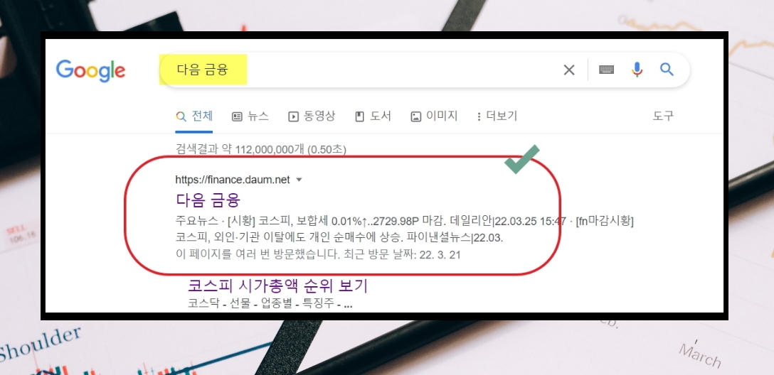 1. 예나 지금이나 전문가랍시고 주식에 대해 확신을 가지며 말하는 사람이 많습니다. 경험해 보시면 아시겠지만, 이러한 사람들의 발언은 대부분 틀릴 가능성이 높습니다. 결국 투자는 본인이 공부 및 연구해서 나아가야 할 영역이죠. 어떤 방식으로 금일 종합지수 전망을 하는지 알려드리겠습니다. 일단 다음에서 운영하는 사이트에서 금일 코스피 지수를 확인해 보겠습니다.
