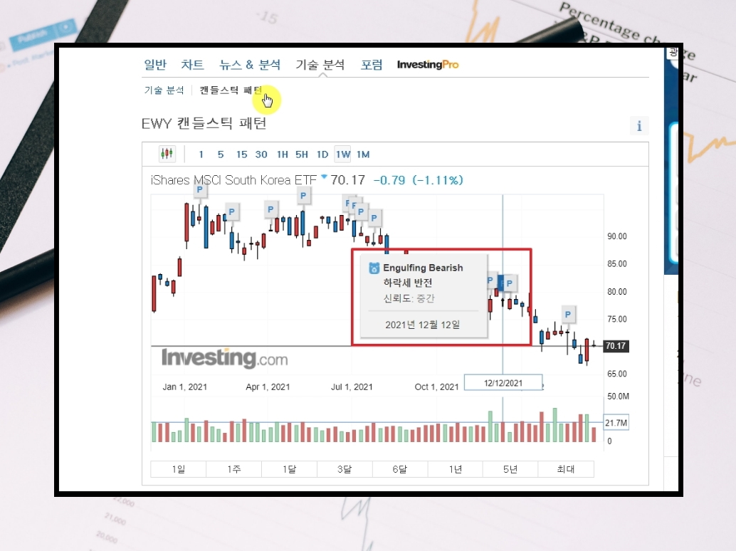 9. 인베스팅에서 제공하는 캔들스틱 패턴 도구를 활용하는 것도 좋습니다. 무조건 맞는 것은 아니지만, 기술적 지표를 선호하는 분이라면 편하게 기술적 분석을 할 수 있습니다. 최근 들어 반대로 가는 경우도 있으니 직접 검증을 해본 후 활용하는 것이 좋습니다.