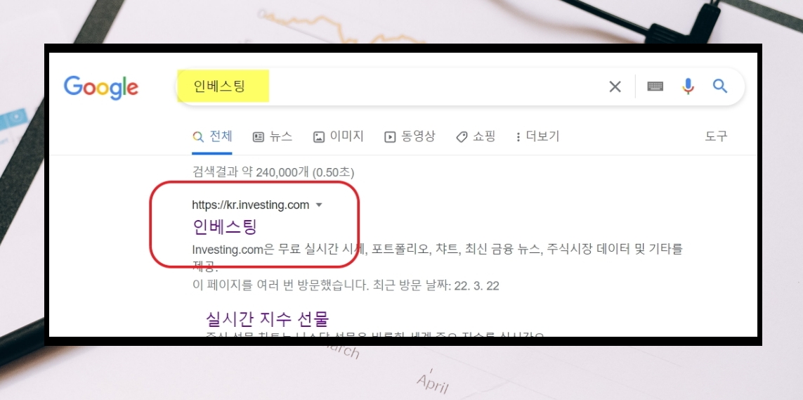 5. 또 다른 금일 코스피 예상 방법을 알려드리겠습니다. 이번에는 해외 사이트인 인베스팅을 이용해 보도록 하겠습니다.