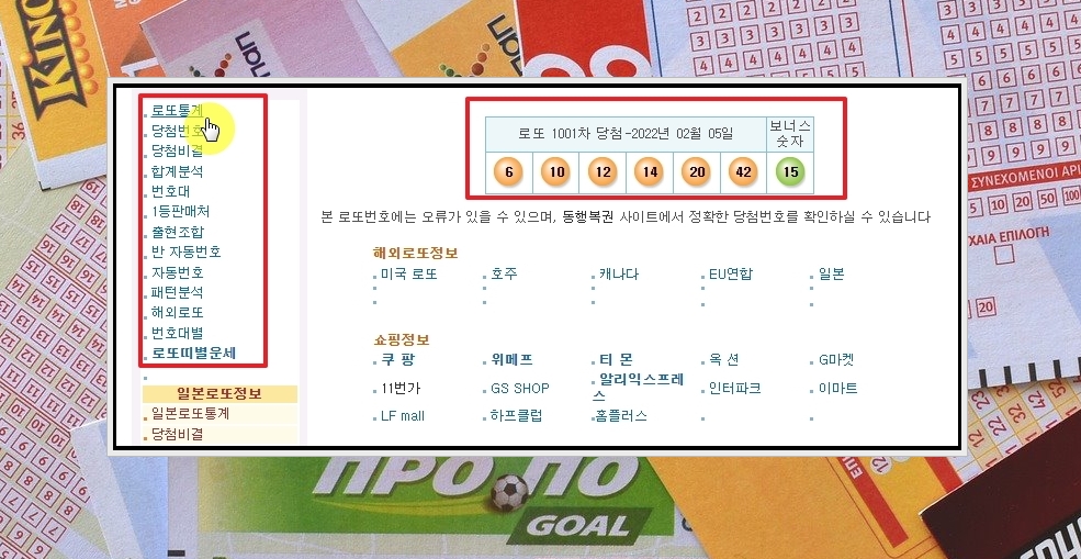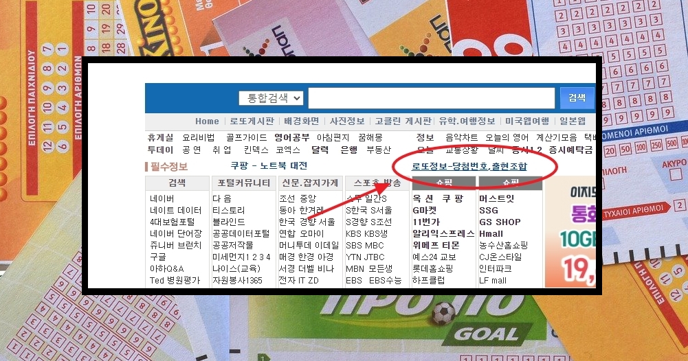 3. 고베스트 홈페이지에 접속하면 홈페이지 화면 중앙 부근에 있는 [로또정보-당첨번호, 출현조합]을 클릭합니다.