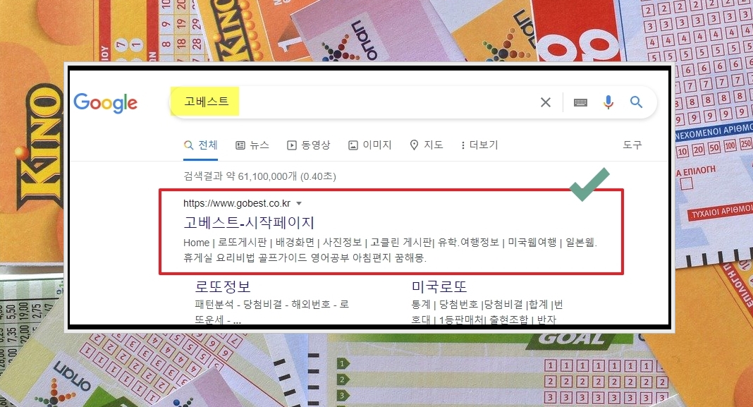 3. 고베스트 홈페이지에 접속하면 홈페이지 화면 중앙 부근에 있는 [로또정보-당첨번호, 출현조합]을 클릭합니다.