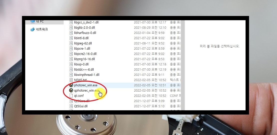 3. 다운로드 받은 파일은 압축이 되어 있습니다. 알집이나 반디집 프로그램을 통해 압축을 해제해야 합니다. 압축을 해제하면 여러 가지 파일이 나타나는데, 여기에서 qphotorec_win을 실행해주시길 바랍니다.