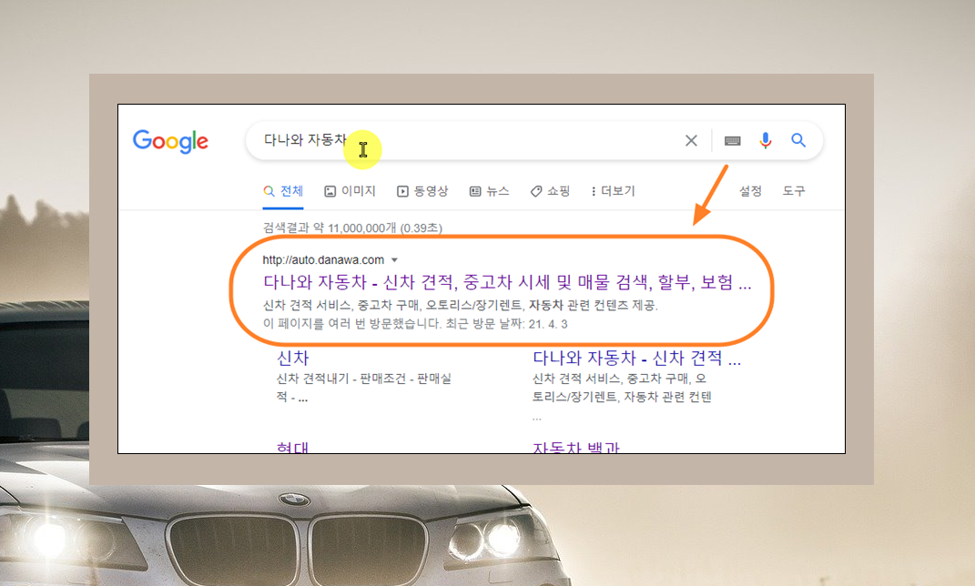 2. 차량시세를 파악하기에 알맞은 사이트를 알려드릴게요. 바로 다나와 자동차 홈페이지인데요. 이곳의 장점은 매물이 많다는 것이에요. 이렇게 많으면 가격 비교를 하기에 유리하고, 적정 시세를 파악하기에 용이해요.