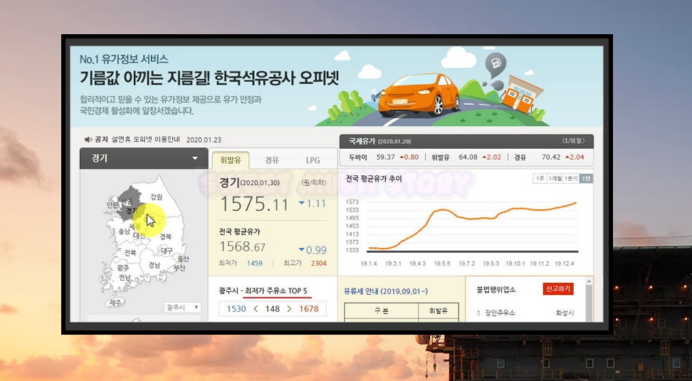실시간은 아니지만, 주유할 때 유용하게 사용할 수 있는 정보를 확인할 수 있는 사이트를 알려드릴게요. 공공기관에서 운영하는 opinet인데요. 이곳에서는 국제유가 확인은 물론이고, 저렴한 주유소 찾기를 할 수 있는 곳이에요.
