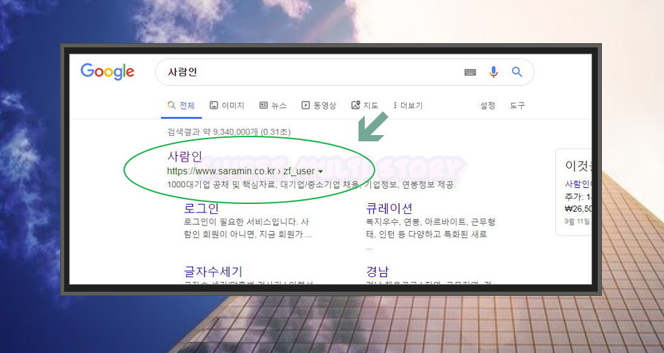 3. 사람인 홈페이지에 접속하게 되면 메뉴에서 자료통을 찾아 주세요.