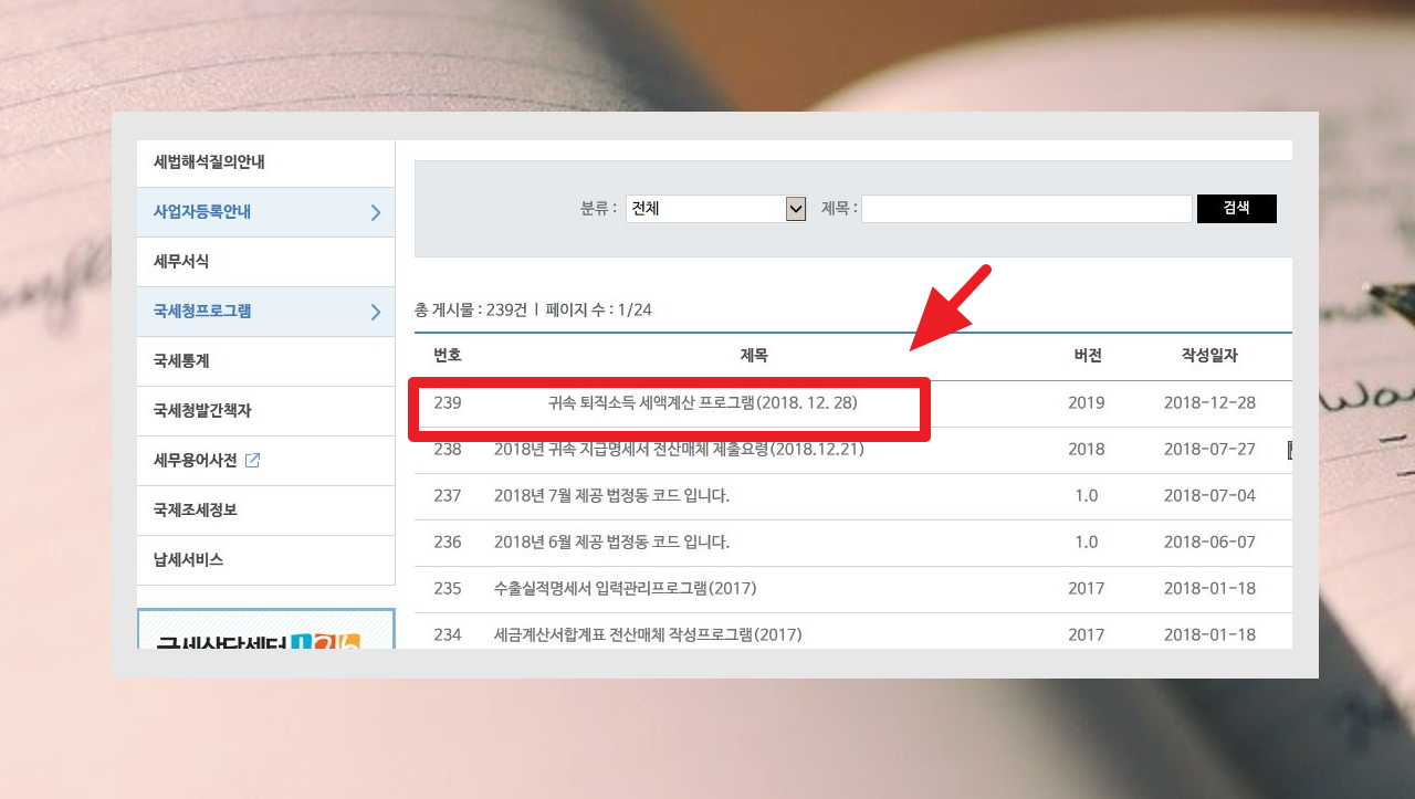 6. 세액 관련 프로그램이 보이네요. 최근에 업데이트가 되었네요. 해당 게시물을 클릭해 주세요.