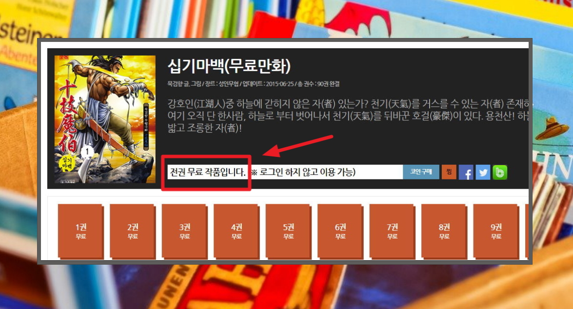 4. 하늘로부터 벗어나서 천기를 뒤바꾼 호걸의 이야기인 십기마백을 감상해 보겠습니다. 작품을 선택하고, 감상하고자 하는 부분을 선택하면 되는데요. 묵검향 사이트에서 무료로 제공하는 작품은 전권을 볼 수 있고, 로그인을 하지 않아도 되기 때문에 굉장히 좋습니다.