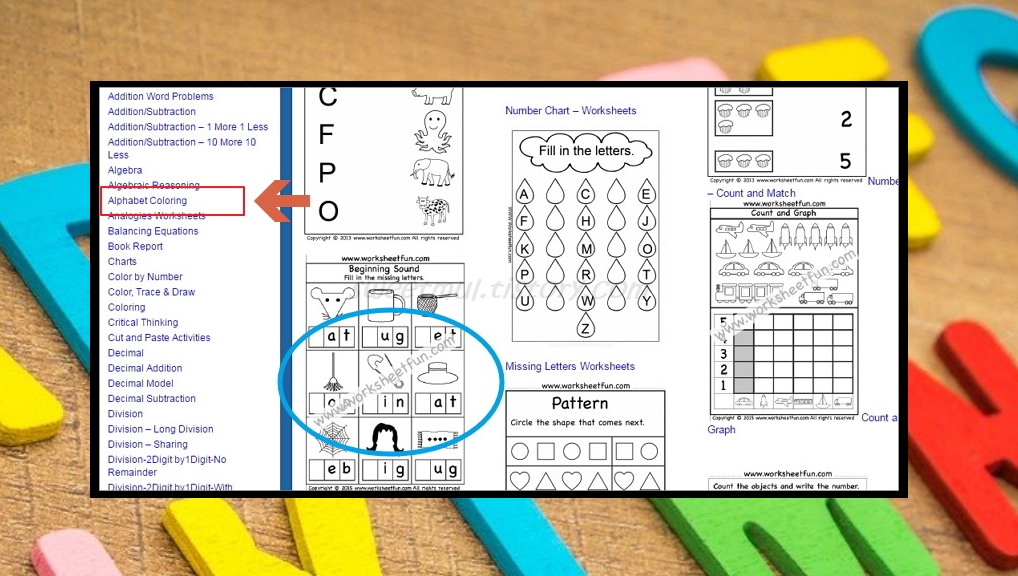 ▲ 좌측 메뉴에서 '알파벳 컬러링'을 찾아주세요.