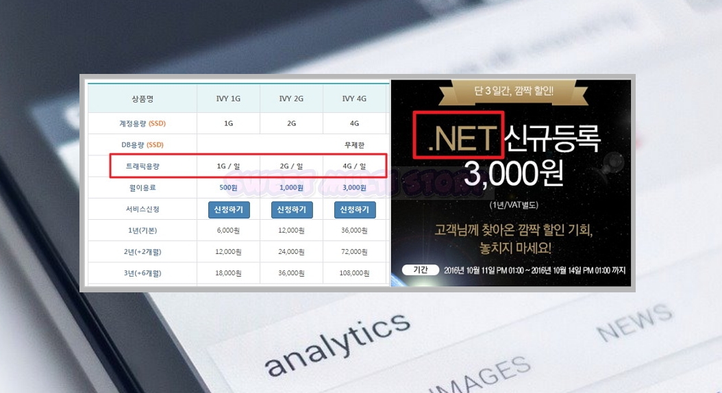 간단하게 설명해 드리자면 손님(방문자)이 홈페이지에 접속했을때 사용하는 데이터양이라고 보시면 되는데요. 데이터의 크기에 따라 달라지지만, 보통 1G에 1000명 접속한다고 보시면 됩니다.