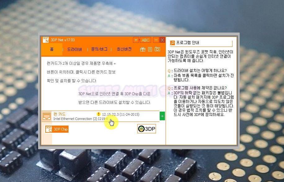 지금까지 realtek 랜카드 드라이버를 간단하게 설치하는 방법을 알려드렸는데요. 그래픽카드, CPU, 사운드카드에 대해서도 위와 같은 방법을 사용할 수 있습니다. 3dp chip 프로그램을 이용하시면 되는데요. 3dp net 내려받은 사이트에 있습니다.