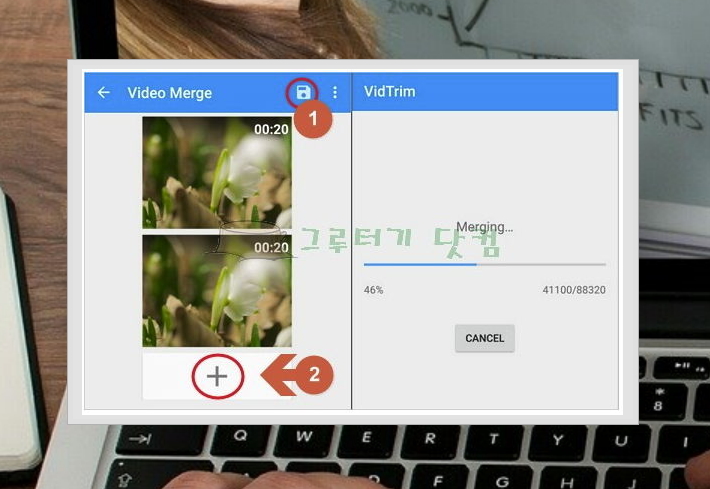 Merging 표시와 함께 동영상 화면 합치기가 진행되는데요.