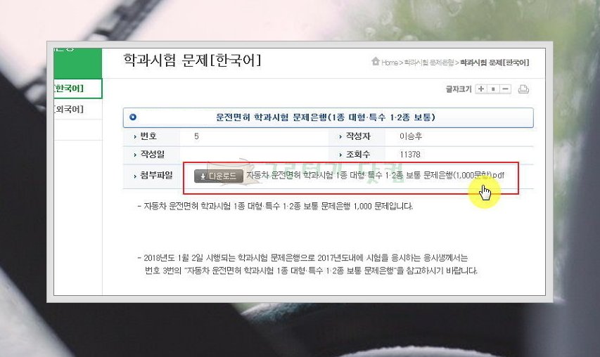 무료로 받을 수 있는 운전면허 필기시험문제를 최신버전으로 내려받아보았는데요. 도로교통공단 홈페이지에 보시면 실기나 도로주행에 도움되는 동영상을 찾을 수 있습니다. 필기에 합격하시고 실기를 준비할 때 시청하면 도움이 돼요.