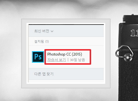 ▲ '30일 남음'이라고 정확히 어도비 포토샵 체험판에 대한 사용 기간이 나옵니다.