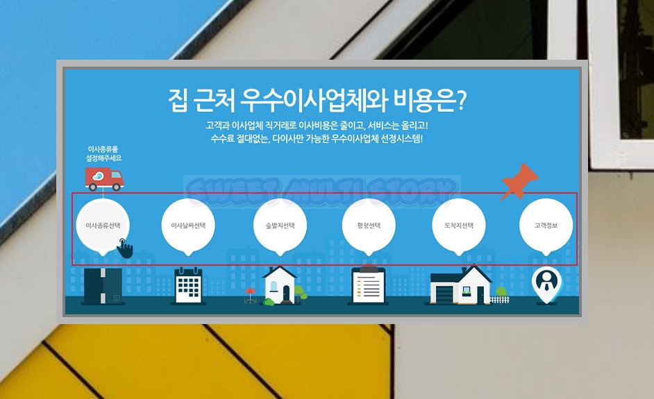 이용방법은 간단합니다. 이사종류, 날짜, 출발지, 평형, 도착지를 선택하고 연락처를 적으면 되는데요. 이렇게 하면 조건에 맞는 우수업체를 몇 군데 추천해준답니다. 그럼 여러 곳에서 방문견적을 받고 결정하시면 돼요.