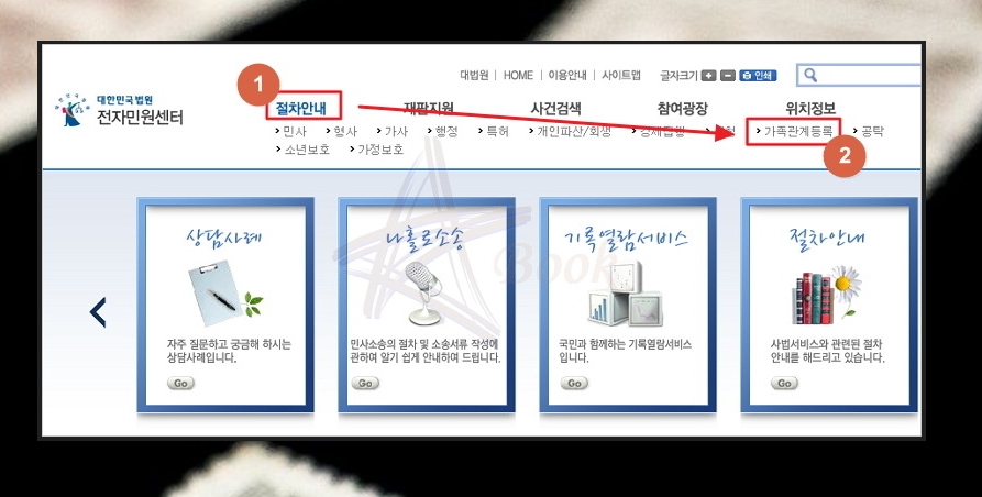 (3) 전자민원센터에서 '절차안내 ▷ 가족관계등록' 클릭