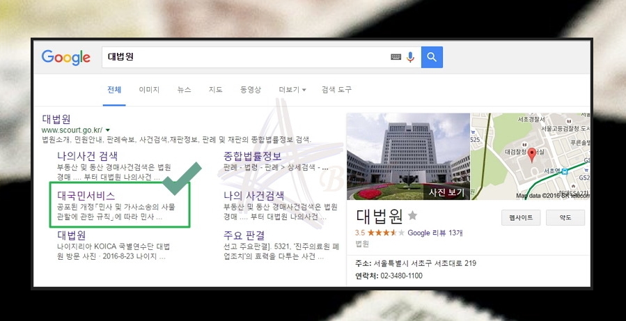 (1) 대법원의 '대국민 서비스' 클릭 및 접속
