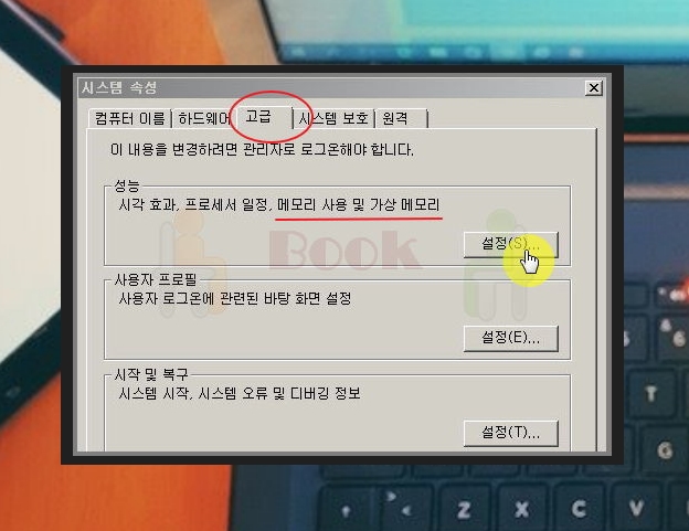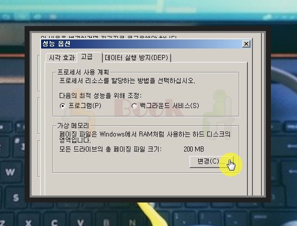 ▲ 가상 메모리에서 변경 버튼을 눌러주세요. 가상 메모리는 하드 디스크의 일부를 램처럼 사용하는 것을 말합니다. 이를 통해 메모리 부족을 해결하고, fatal error 발생 빈도를 낮출 수 있어요.