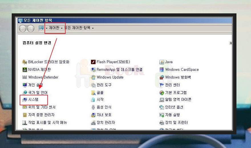 ▲ 윈도우에서 시작 버튼을 누른 후 제어판으로 이동해주세요. 모든 제어판 항목에서 시스템을 찾아 클릭합니다.