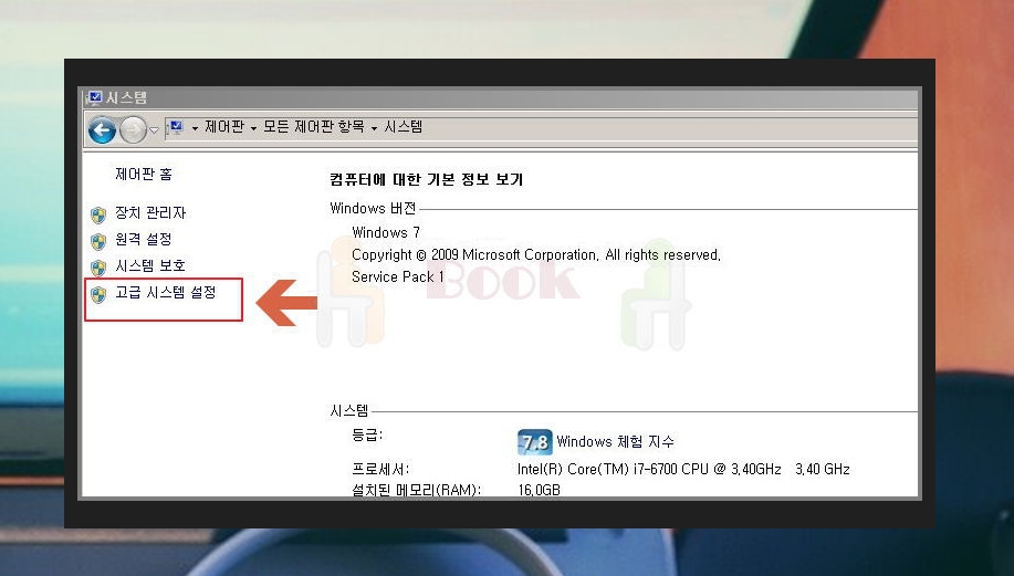 ▲ 시스템에서 간단하게 본인의 메모리를 확인하실 수 있습니다. 현재 저는 16기가를 사용하는데요. 8기가를 사용했을 때 오버워치나 Steam 게임을 실행한 상태에서 다른 프로그램을 함께 사용하면 fatal error가 자주 일어났습니다. 8기가도 많다고 생각했는데, 오류가 많이 나서 하나 더 장착 했습니다. 그럼 error 예방을 위해 고급 시스템 설정을 통해 메모리 설정을 하도록 할께요.