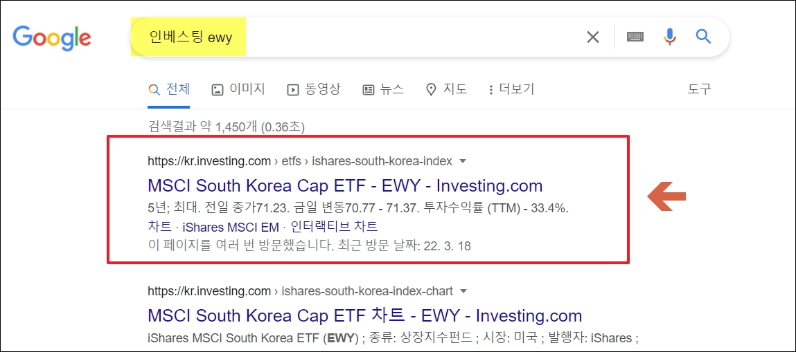 ▼두 번째로 내일 증시 전망에 도움이 되는 지표는 EWY 입니다. MSCI South Korea Cap ETF 입니다. 미국 시장에서는 해당 ETF를 통해 우리 주식시장에 투자를 합니다. EWY가 새벽 동안 어떤 흐름을 보였는지 확인해보면 내일 증시 전망을 파악하는 데에 큰 도움이 됩니다.