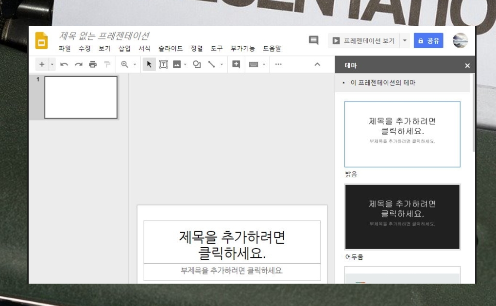 구글 아이디만 있다면 인터넷을 통해 파워포인트 작업을 할 수 있어요.