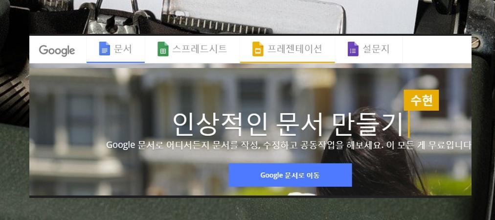 ▲ 구글문서 사이트에서 메뉴에 있는 프레젠테이션을 클릭해 주세요.