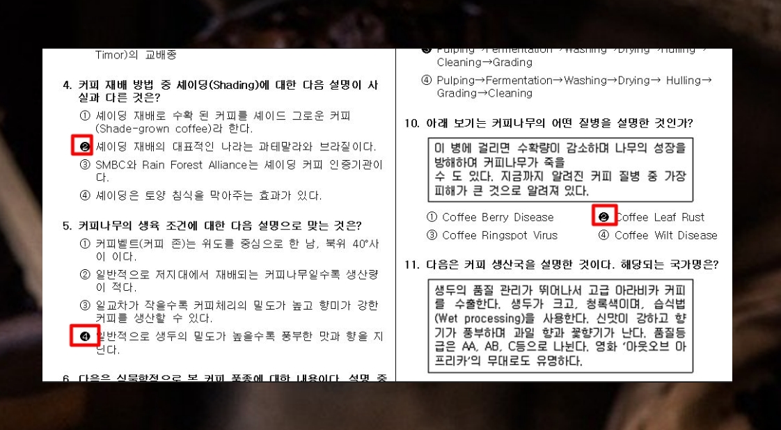 커피 바리스타 자격증 필기시험 기출문제 받기