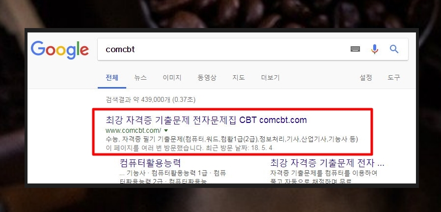 구글이나 네이버 등의 검색 사이트를 통해 자격증 기출문제 사이트인 comcbt에 접속해 주세요.