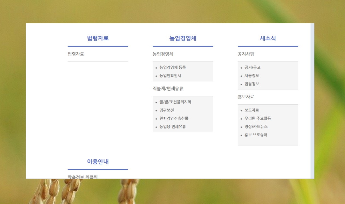 농업경영체 등록 관련 페이지가 열렸습니다. 이곳에서 신청서 양식을 다운 받거나 경영체 등록에 대한 상세한 안내를 받을 수 있어요.
