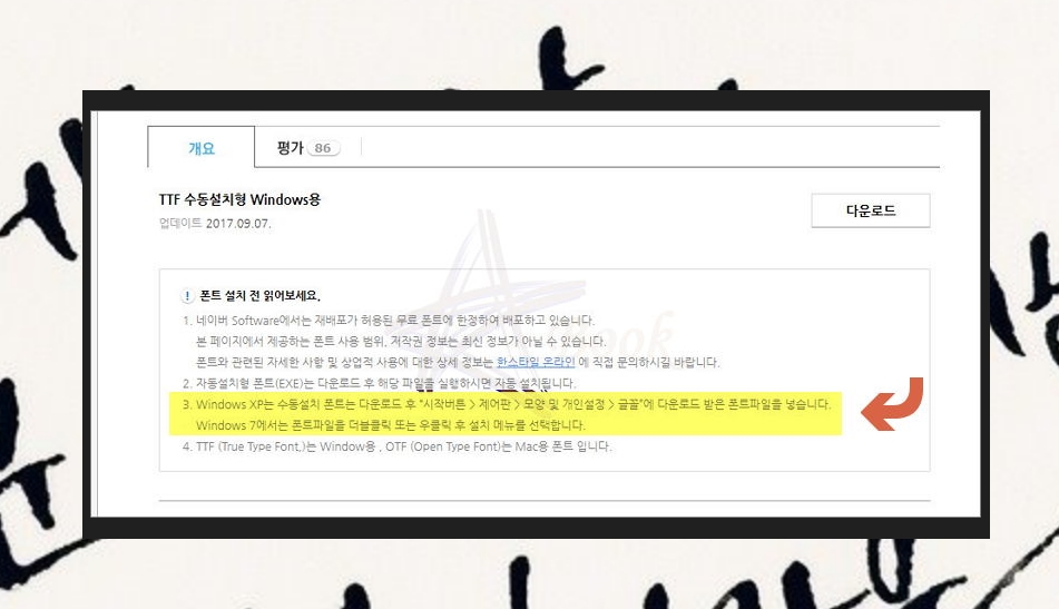 무료 캘리그라피 글씨체 다운 및 설치하기.