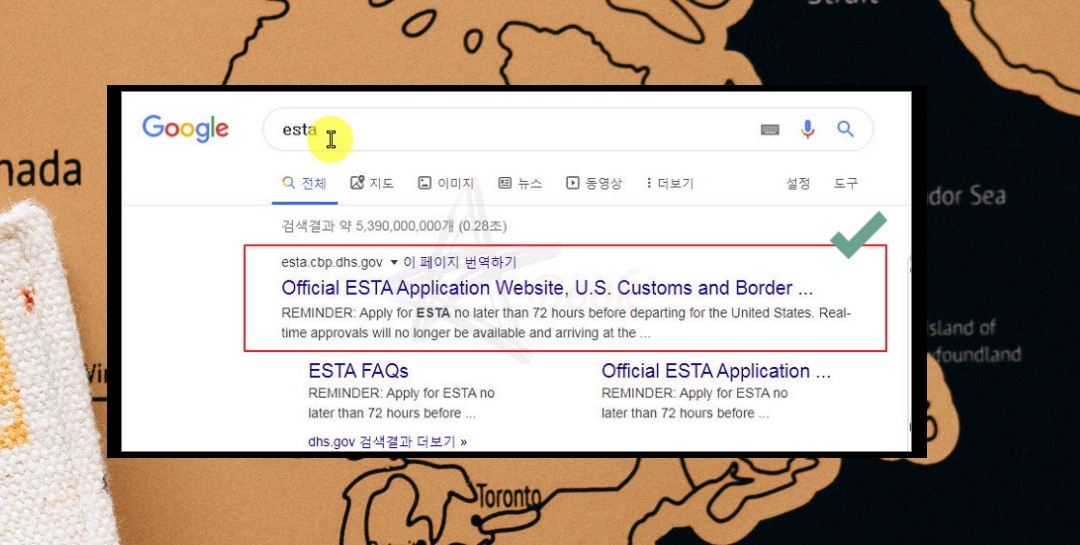 그럼 esta 사이트에 접속하여 미국 비자 신청방법을 알려드릴게요. 해외 사이트이기 때문에 영어로 검색이 되지만, 사이트에서 이용할 때에는 한국어로 진행이 가능해요.