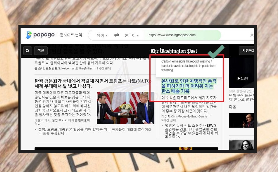 목록을 클릭하거나 URL을 입력해 보세요. 그럼 이렇게 번역기 프로그램이 영어 사이트를 한글로 바꾸어 줘요. 문장에 마우스를 올려보세요. 그럼 해당 내용에 내용에 대한 원문을 확인할 수 있어요. 이 기능을 잘 활용하면 공부하는 데에 도움이 될 거에요.