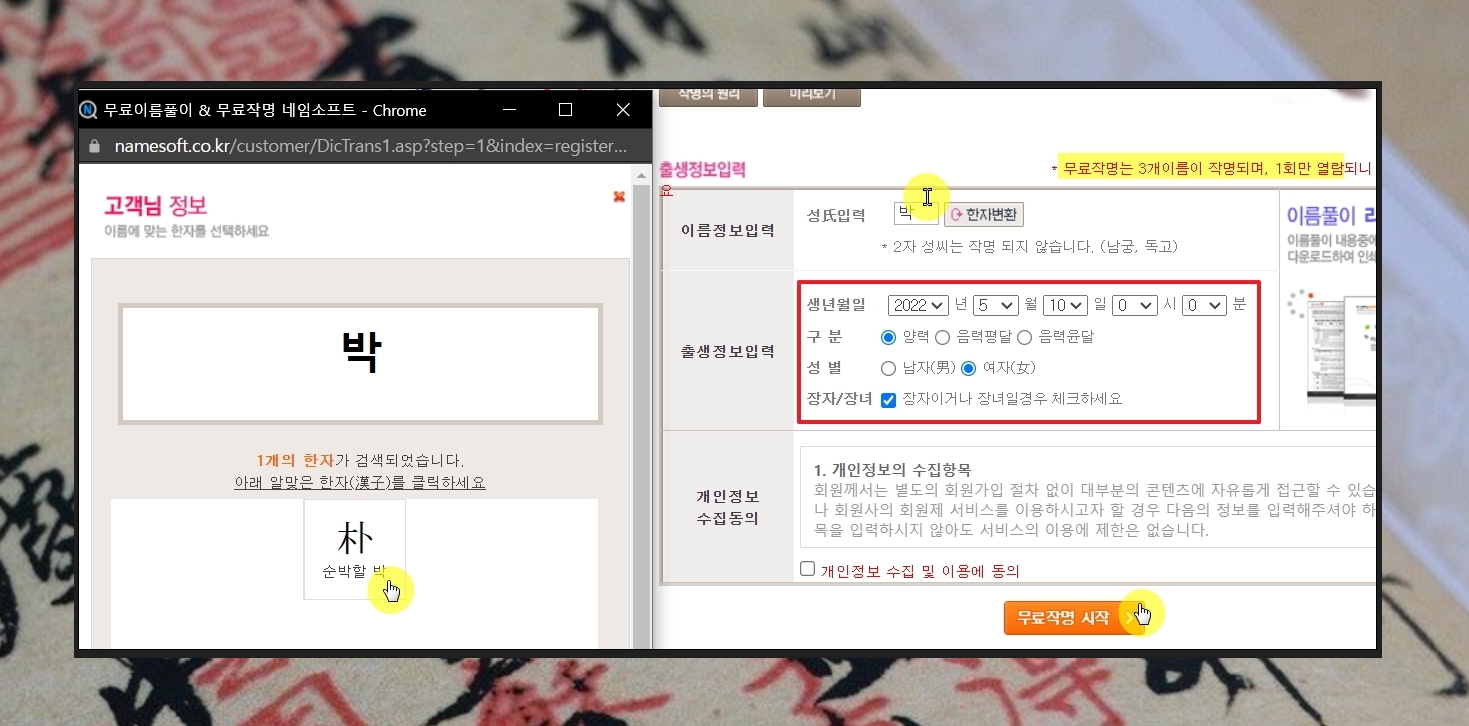 무상으로 편하게 예쁜 한자 이름짓는 방법 따라해 보기.