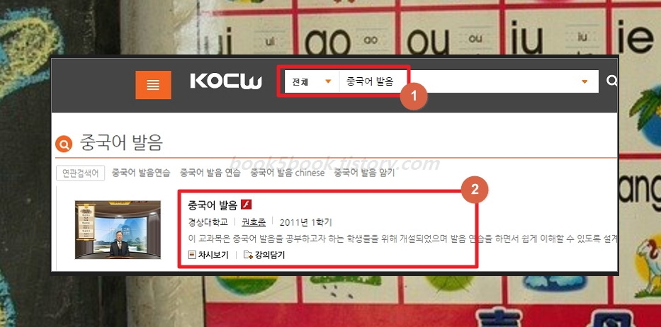 먼저 검색창에 "중국어 발음"을 검색을 해보겠습니다. 총 16개의 대학강의가 나오는데요. 사람마다 학습스타일이 다르니 직접 들어보시고 선택하시는 것이 좋습니다.