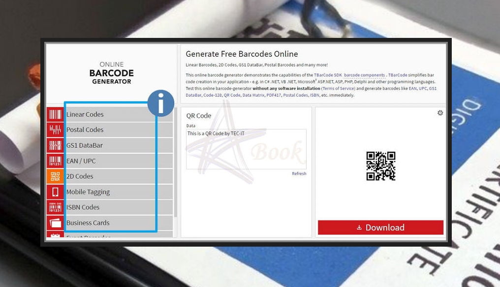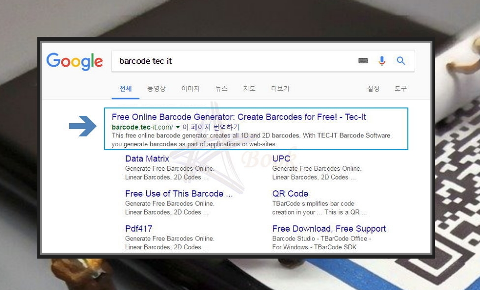 구글이나 네이버에서 'barcode tec it'이라고 검색해보세요. 무료로 이용할 수 있는 생성기를 쉽게 찾을 수 있습니다. 프로그램을 내려받아서 사용하거나 인터넷상에서 바로 바코드를 제작할 수도 있습니다.