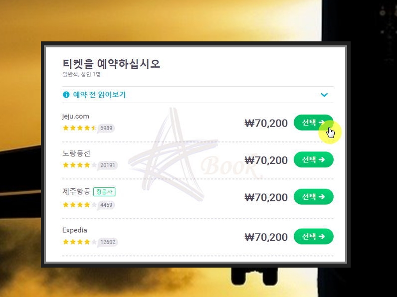 다양한 여행사의 항공권 가격을 비교할 수 있는데요. 여기서는 가격이 동일하네요. 아무거나 선택하셔도 됩니다.