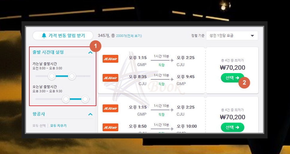 지금까지 제주도 비행기표 가격비교를 통해 최저가를 찾고 예매까지 해보았는데요. 해보시면 아시겠지만, 타이밍이 중요합니다. 몇 달전에 예약을 하거나 알람을 걸어놓는 방식을 사용하면 여행비용을 꽤 아끼실 수가 있어요.