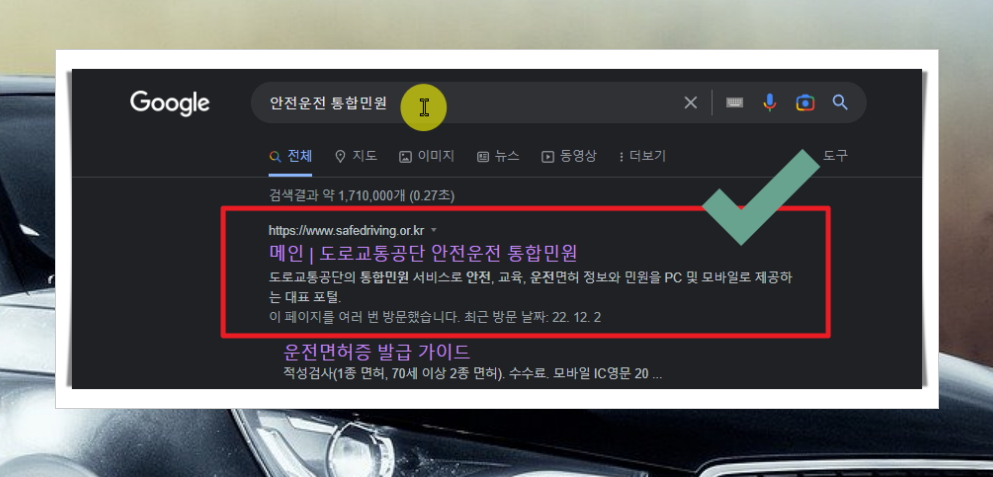 도로교통공단에서는 자동차 운전면허에 관련된 사이트를 운영하고 있습니다. 안전운전 통합민원 사이트인데요. 로그인 없이 바로 이용이 가능합니다.